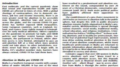 دانلود فوری ترجمه مقاله Abortion in the time of COVID-19: perspectives from Malta با لینک مستقیم