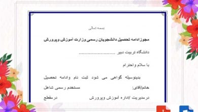 دانلود فوری فرم مجوزادامه تحصیل دانشجویان رسمی وزارت آموزش وپرورش با لینک مستقیم