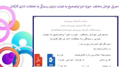 دانلود فوری فرم معرفی عوامل متخلف حوزه اجرا وتصحیح به هیئت بدوی رسیدگی به تخلفات اداری کارکنان با لینک مستقیم