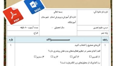 دانلود فوری آزمون علوم تجربی نوبت اول پایه هشتم با لینک مستقیم