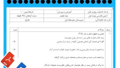دانلود فوری آزمون فارسی نوبت اول پایه هفتم با لینک مستقیم