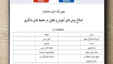 دانلود فوری نمون برگ داوری جشنواره اصلاح روش های آموزش و تحول در محیط های یادگیری با لینک مستقیم