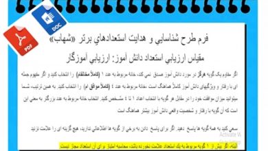 دانلود فوری فرم طرح شناسايي و هدايت استعدادهاي برتر شهاب مقياس ارزيابي استعداد دانش آموز ارزيابي آموزگار با لینک مستقیم