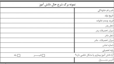 دانلود فوری نمونه برگ شرح حال دانش آموز با لینک مستقیم