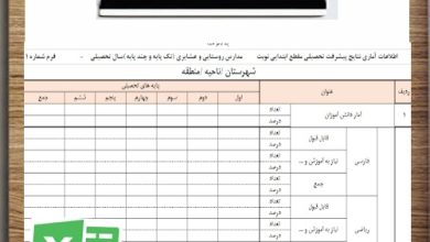 دانلود فوری فرم اکسل اطلاعات آماری نتایج پیشرفت تحصیلی مقطع ابتدایی مدارس شهری شاهد هیئت امنایی غیردولتی روستایی و عشایری تک پایه و چند پایه سال تحصیلی با لینک مستقیم