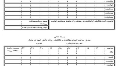 دانلود فوری جدول ساعت انجام مطالعات و تکالیف روزانه دانش آموز در منزل با لینک مستقیم