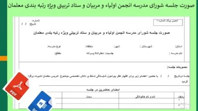 دانلود فوری صورت جلسه شورای مدرسه انجمن اولیاء و مربیان و ستاد تربیتی ویژه رتبه بندی معلمان با لینک مستقیم