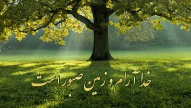 دانلود فوری تابلونوشته زیبای 50 در 70 سانتی متری با عنوان : خدا آرام و زمین صبور است با لینک مستقیم